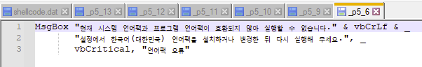 Whilst this send me into a deep... deep rabbit hole which was long and painful and I don't wish to talk about... I found no indication that the packages were patched nor contained anything else malicious other than a custom VBS script. The script would pop up and display an error dialog stating the app can’t run due to a language-pack mismatch and asks the user to install Korean. This of course, is not true.